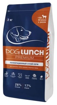 Dog Lunch PREMIUM сухой корм Дог Ланч для взрослых собак Средних и Крупных пород (Ягненок и рис)